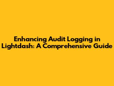 Enhancing Audit Logging In Lightdash: A Comprehensive Guide