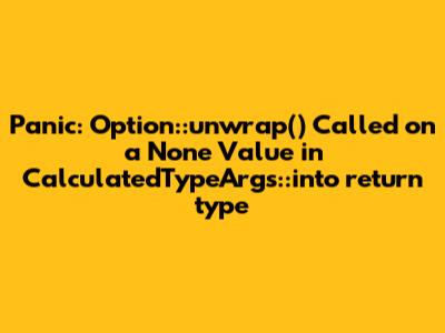 Encountering a panic in your code can be a frustrating experience, especially when the error message isn't immediately clear. One such panic, Option::unwrap() on a None value, often arises in Rust programming when dealing with Option types. This article delves into the specifics of this panic, particularly within the context of CalculatedTypeArgs::into_return_type, and provides a comprehensive understanding of its causes and solutions. Understanding the root cause and implementing robust error handling are crucial for writing stable and reliable software. We will explore a real-world scenario where this panic occurred, analyze the code snippet that triggered it, and offer strategies to prevent it in your projects.