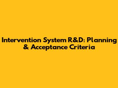 Intervention System R&D: Planning & Acceptance Criteria